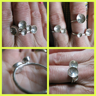 These are my Droplet Rings. They're a set of three stacking rings with formed discs soldered on. I really love these because they can be worn in many different combinations. And you can't tell here because the light was dim when I took these pictures, but they're quite bright and shiny.